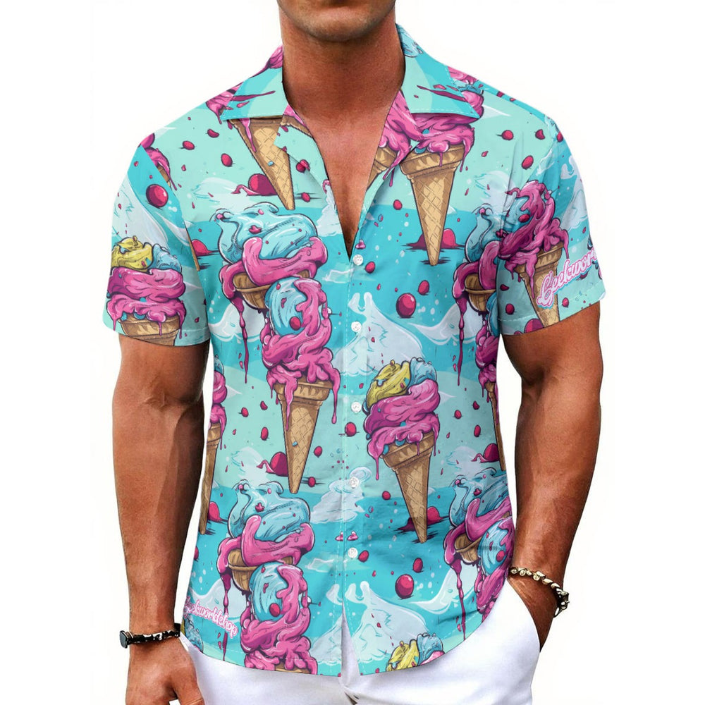 "Sundae Breeze" Hawaiian Shirt – Ice Cream Cone Print | Made 2 Order